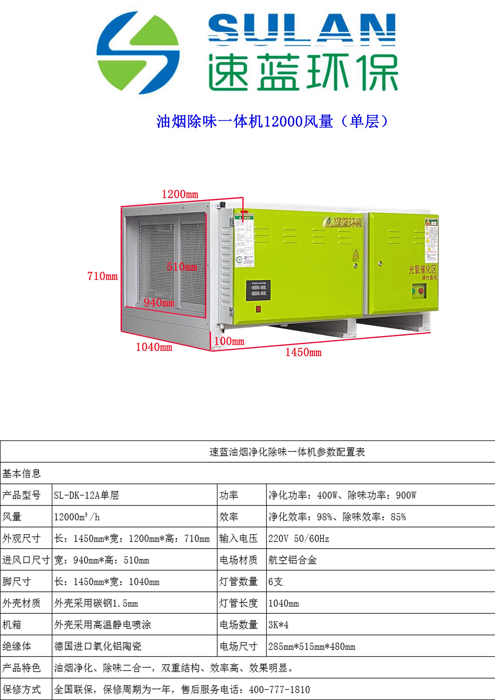 12000風(fēng)量油煙凈化器一體機(jī)單層類別:餐飲油煙凈化除味一體