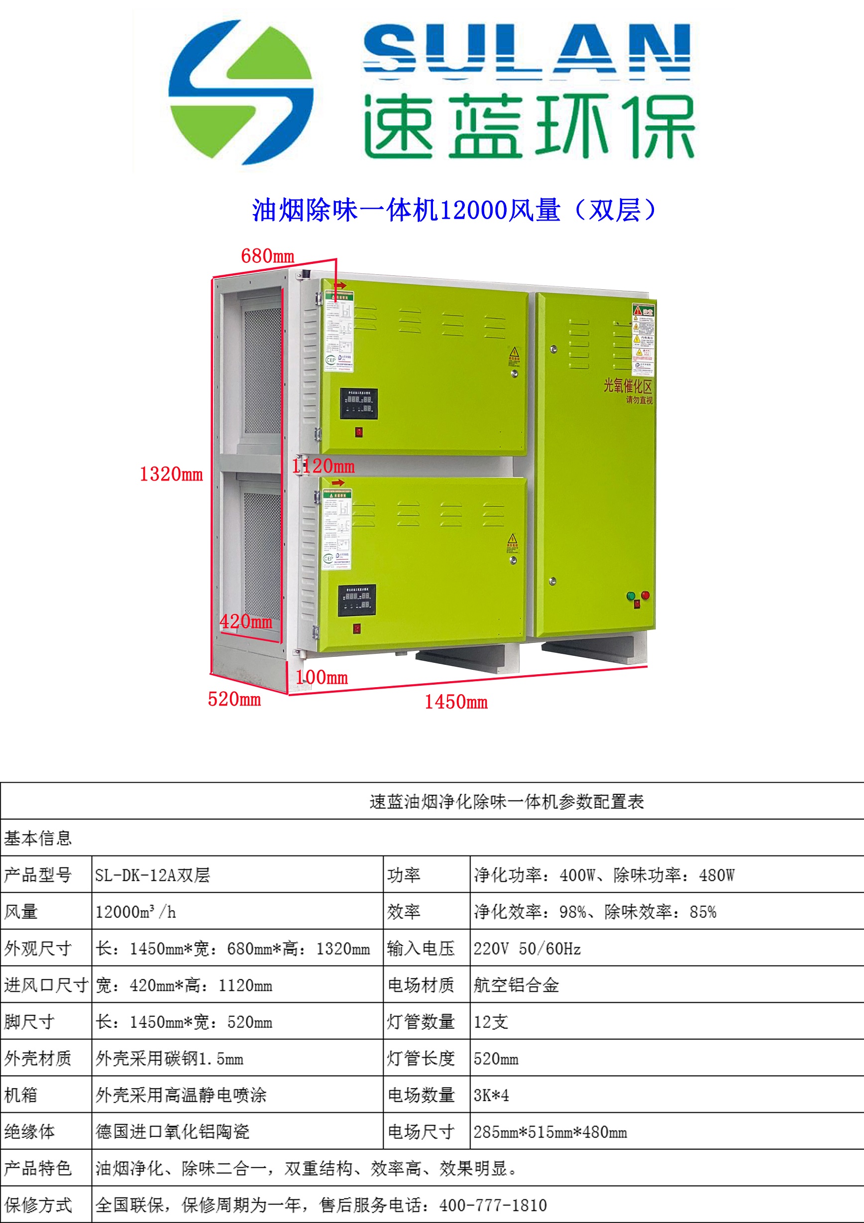 12000風(fēng)量油煙凈化器一體機(jī)(雙層)類別:餐飲油煙凈化除味一體