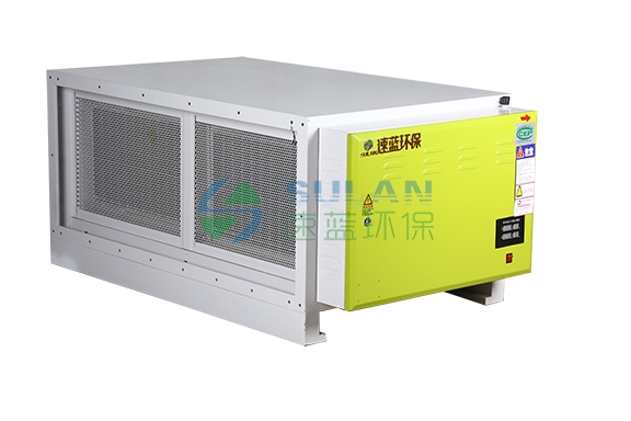 低空油煙凈化器采用機(jī)械凈化和靜電凈化雙重凈化方式。油煙等氣體被風(fēng)機(jī)吸入管道后,首先輸入初級(jí)裝置——凈化整流室,采用重力慣性凈化技術(shù),室內(nèi)的特殊分層結(jié)構(gòu)逐步對(duì)大粒徑污染物進(jìn)行分級(jí)物理分離,并且均衡整流,分離出的大顆粒油滴在自身重力的作用下流入油槽排出,然后小顆??諝饣旌衔飼?huì)通過靜電場(chǎng)前的過濾網(wǎng)再次過濾,最后進(jìn)入高壓靜電場(chǎng),在被電離后,離子別正負(fù)兩極分別吸附,達(dá)到空氣微小顆粒的凈化,